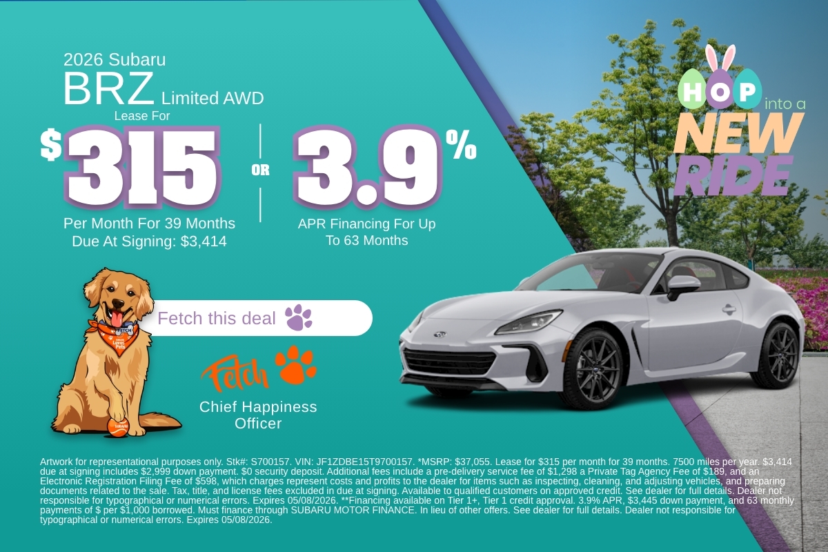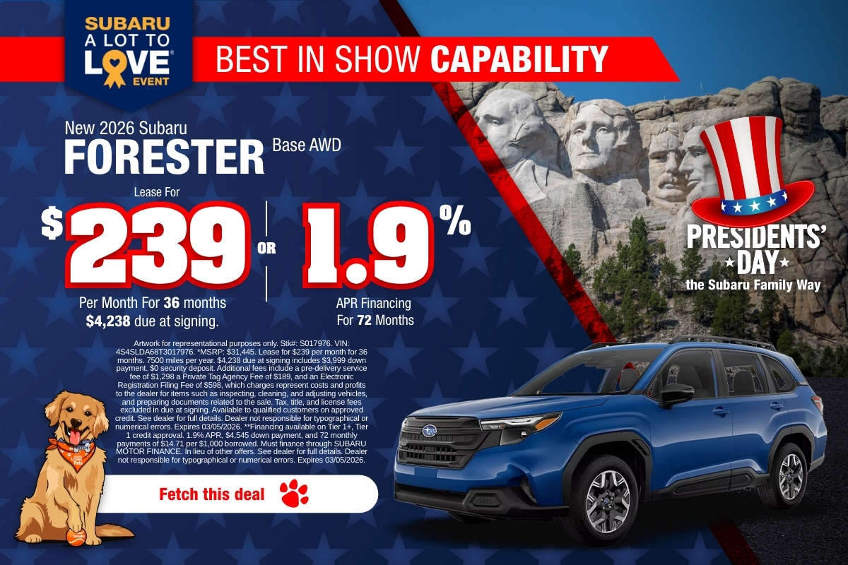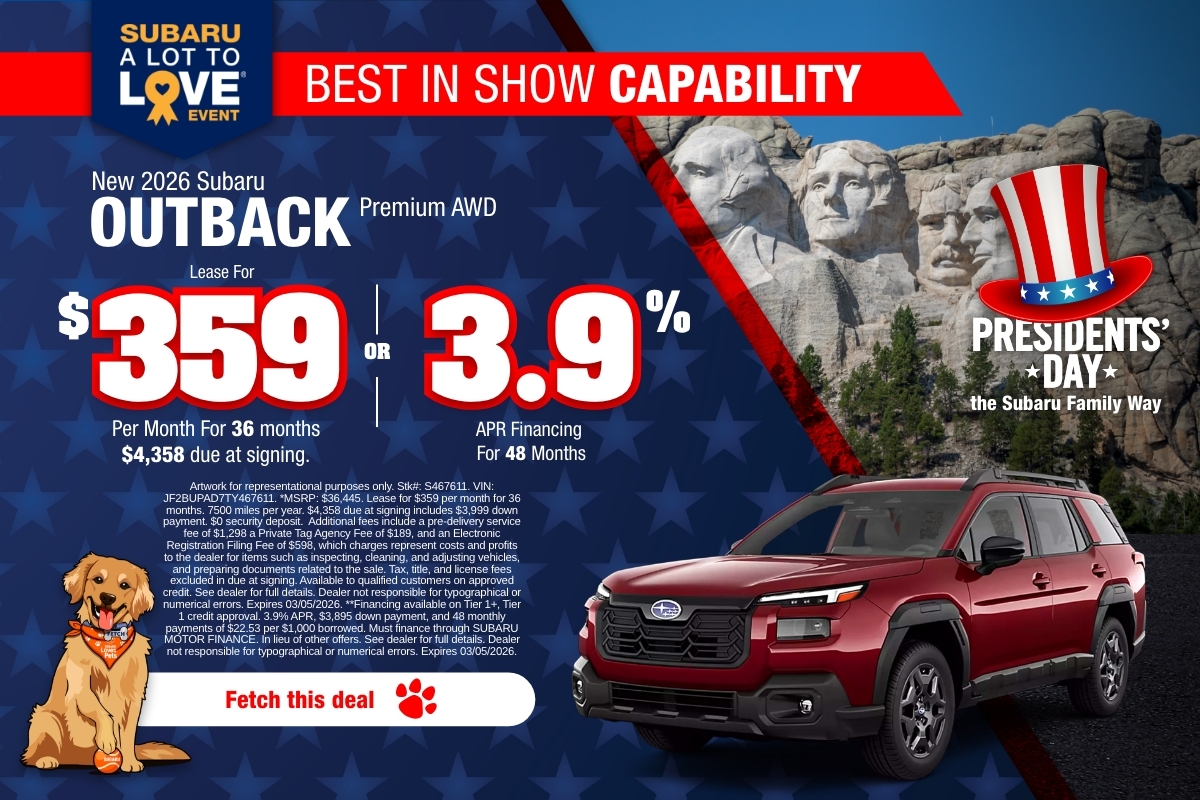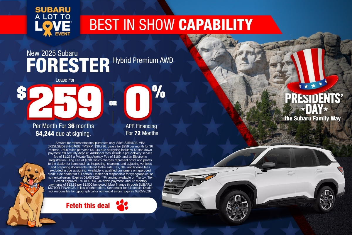 Want to jump straight to a specific model? Browse popular choices like the Subaru Outback, Subaru Forester, Subaru Forester Hybrid, Subaru Crosstrek, Subaru Ascent, Subaru Solterra, Subaru WRX, Subaru BRZ, Subaru Legacy, or Subaru Impreza. If you’re shopping with savings in mind, check today’s new car specials and rotating Dealer Specials.