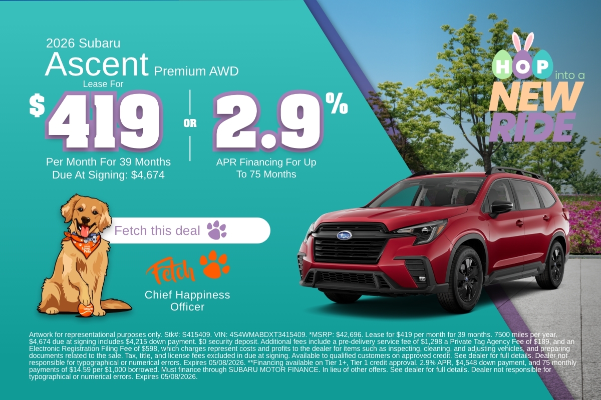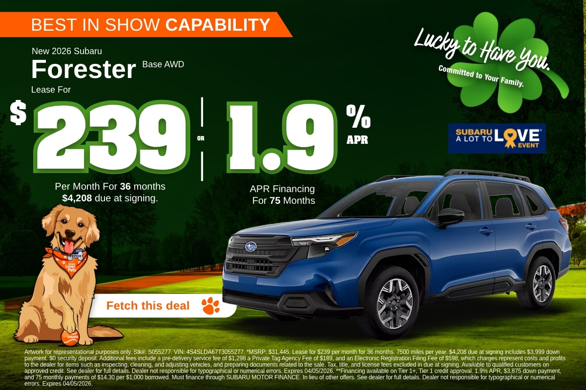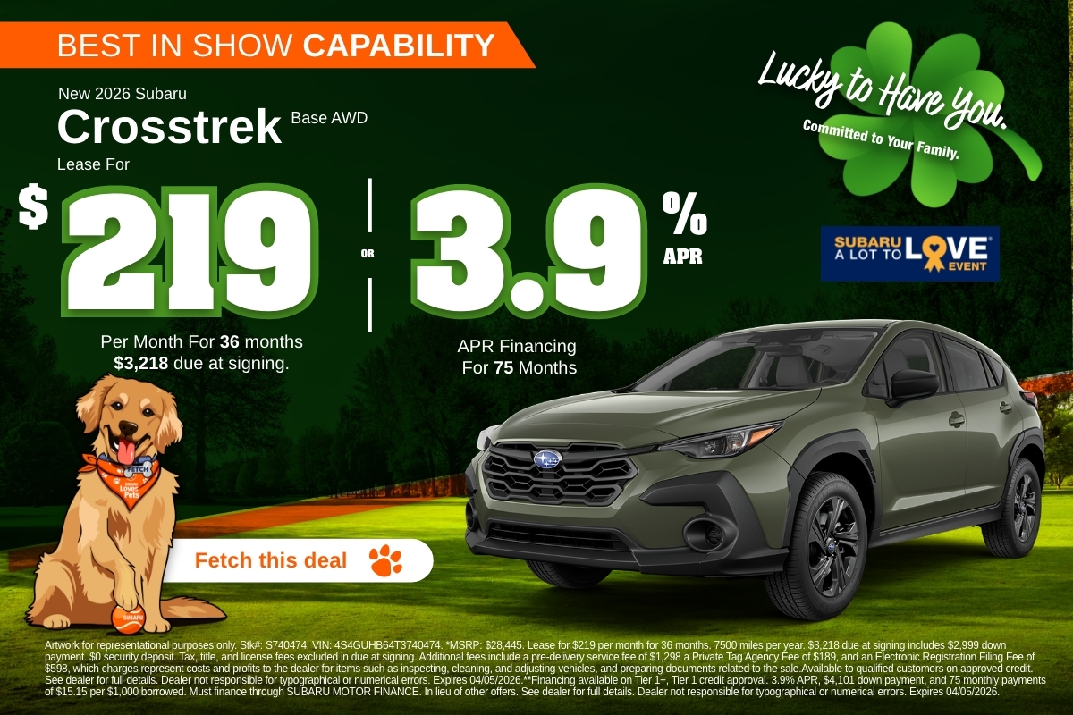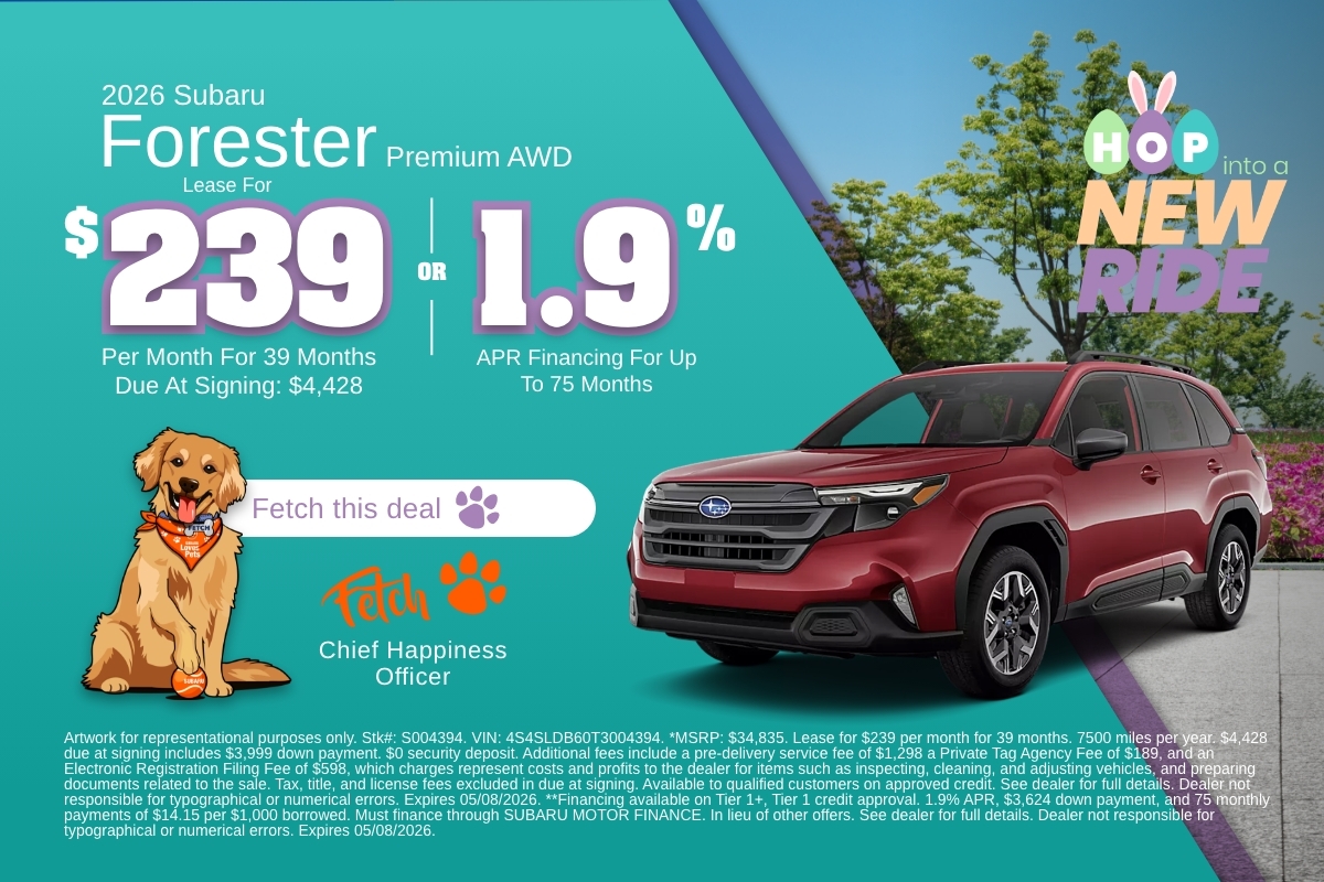 Want to jump straight to a specific model? Browse popular choices like the Subaru Outback, Subaru Forester, Subaru Forester Hybrid, Subaru Crosstrek, Subaru Ascent, Subaru Solterra, Subaru WRX, Subaru BRZ, Subaru Legacy, or Subaru Impreza. If you’re shopping with savings in mind, check today’s new car specials and rotating Dealer Specials.